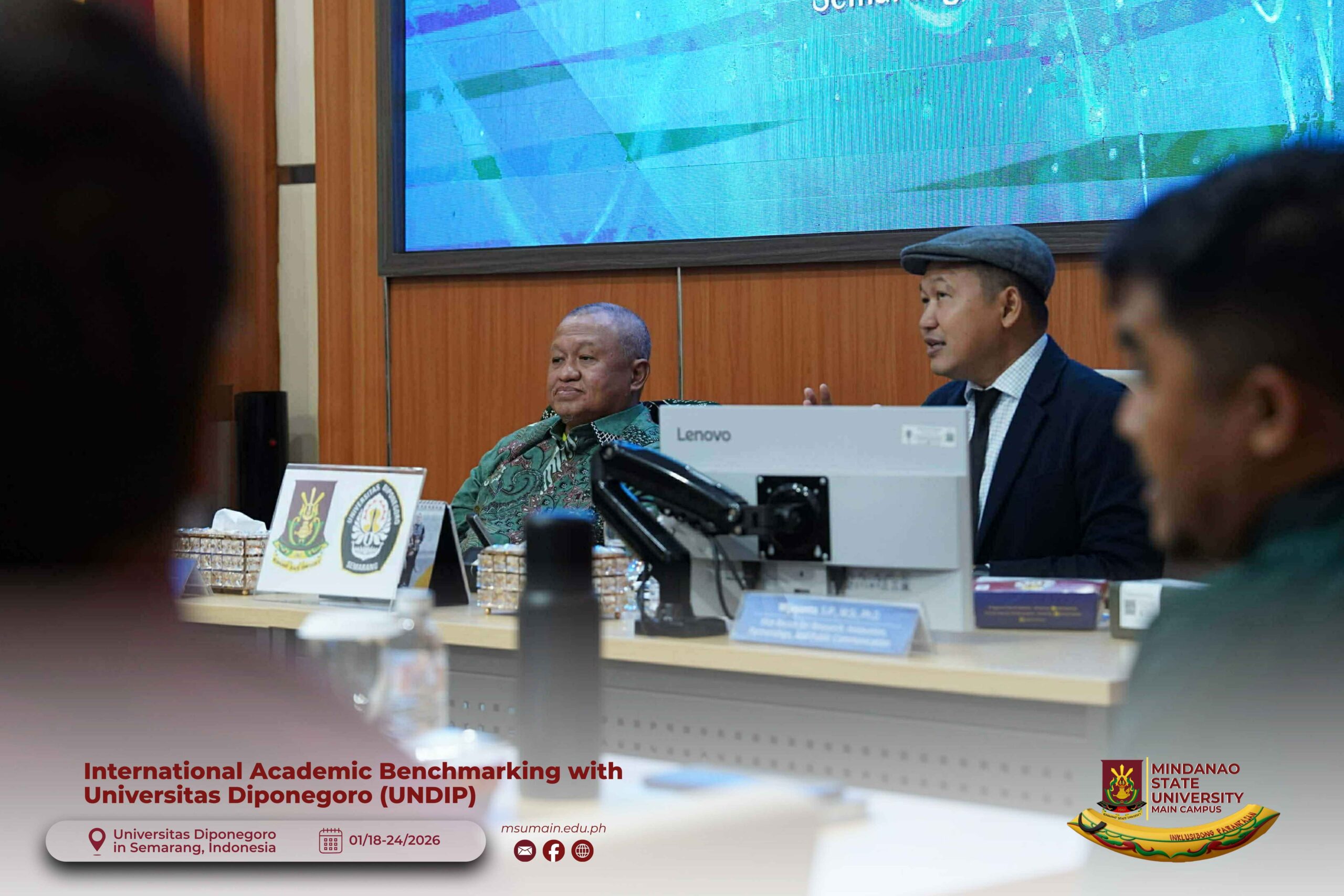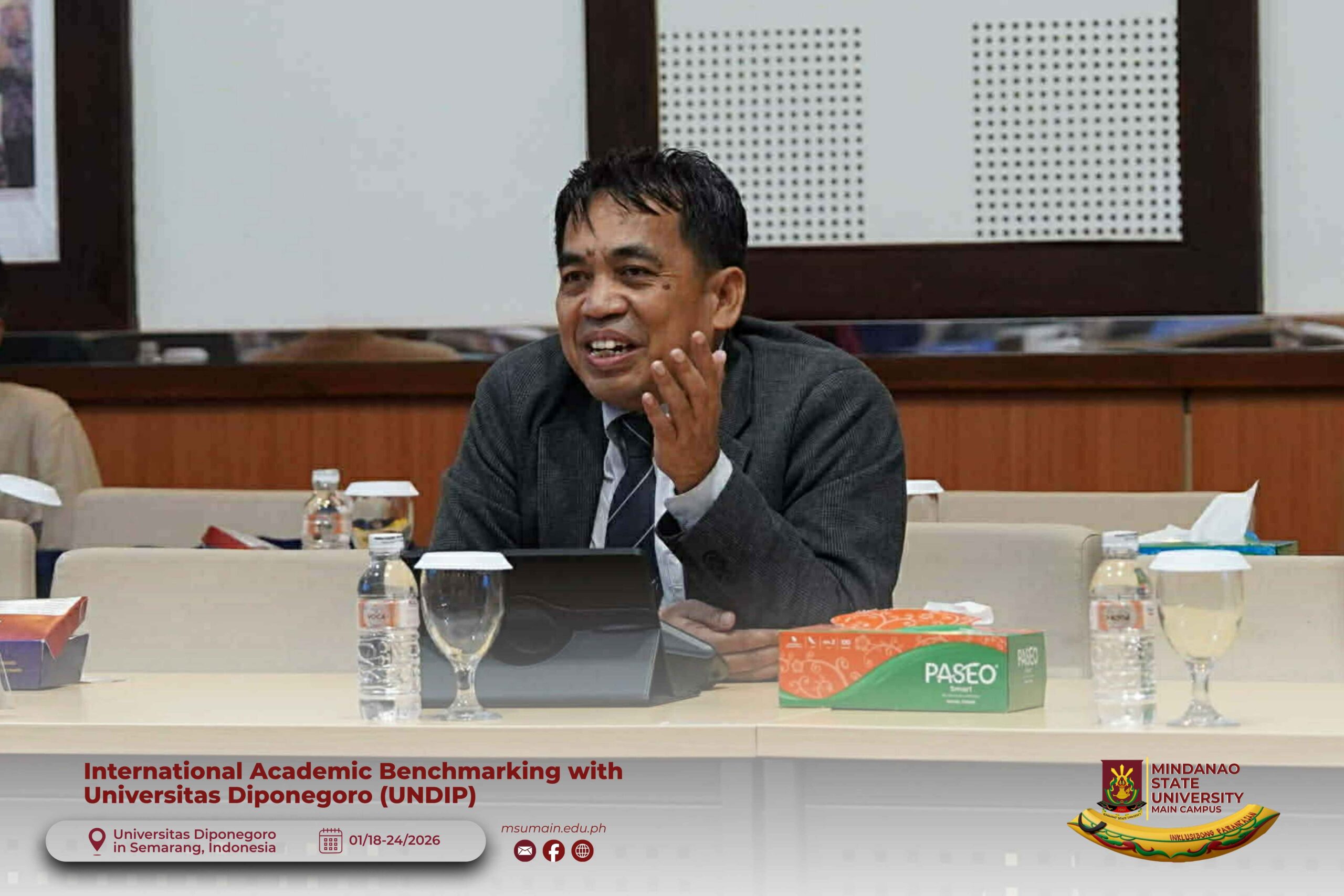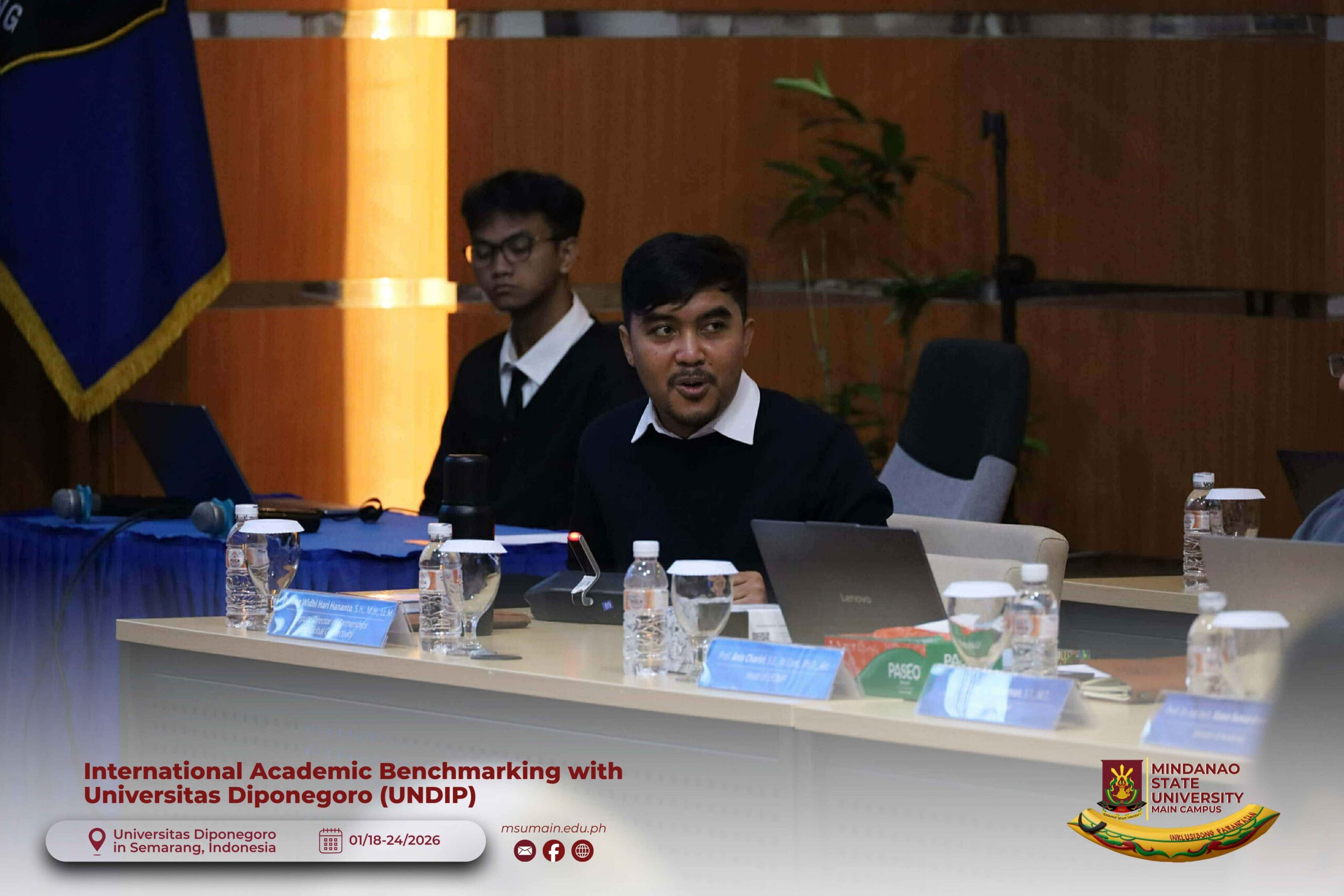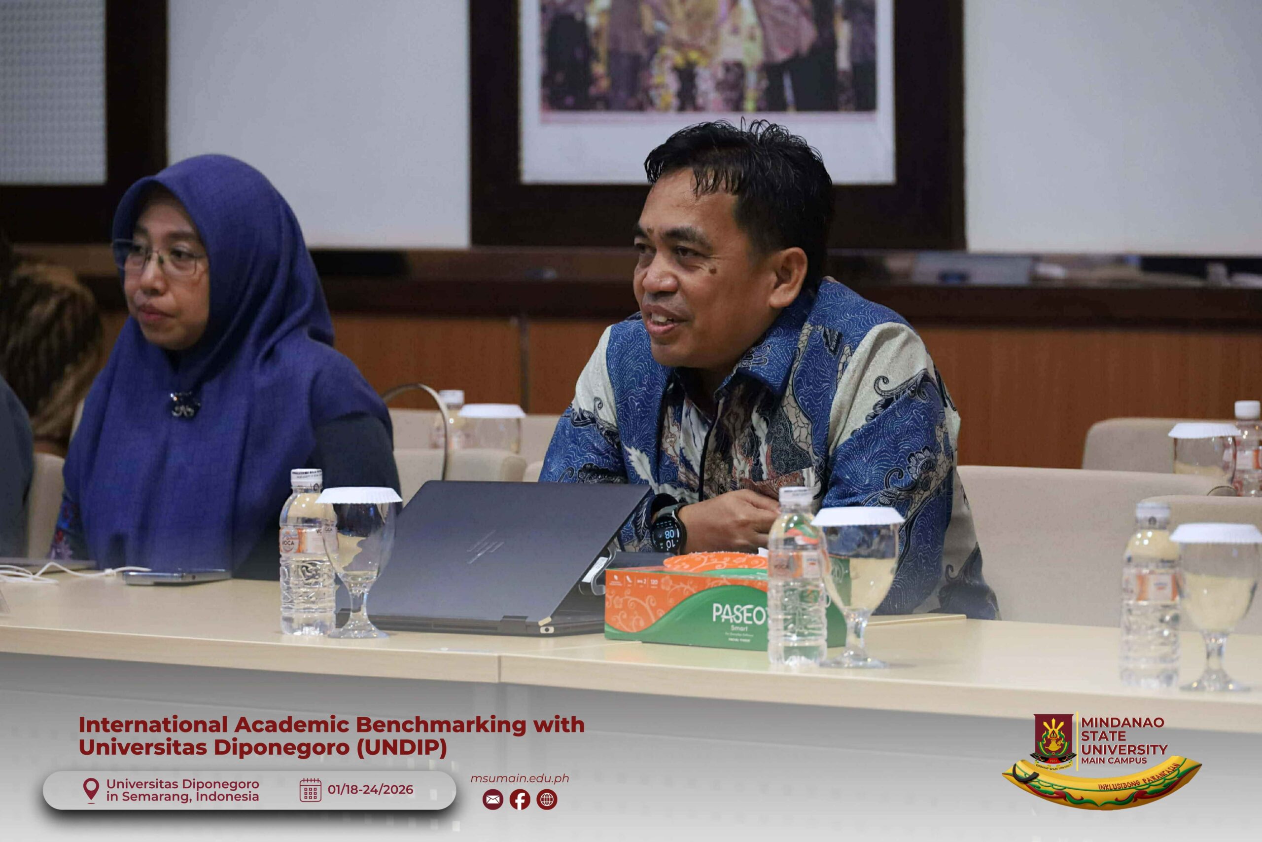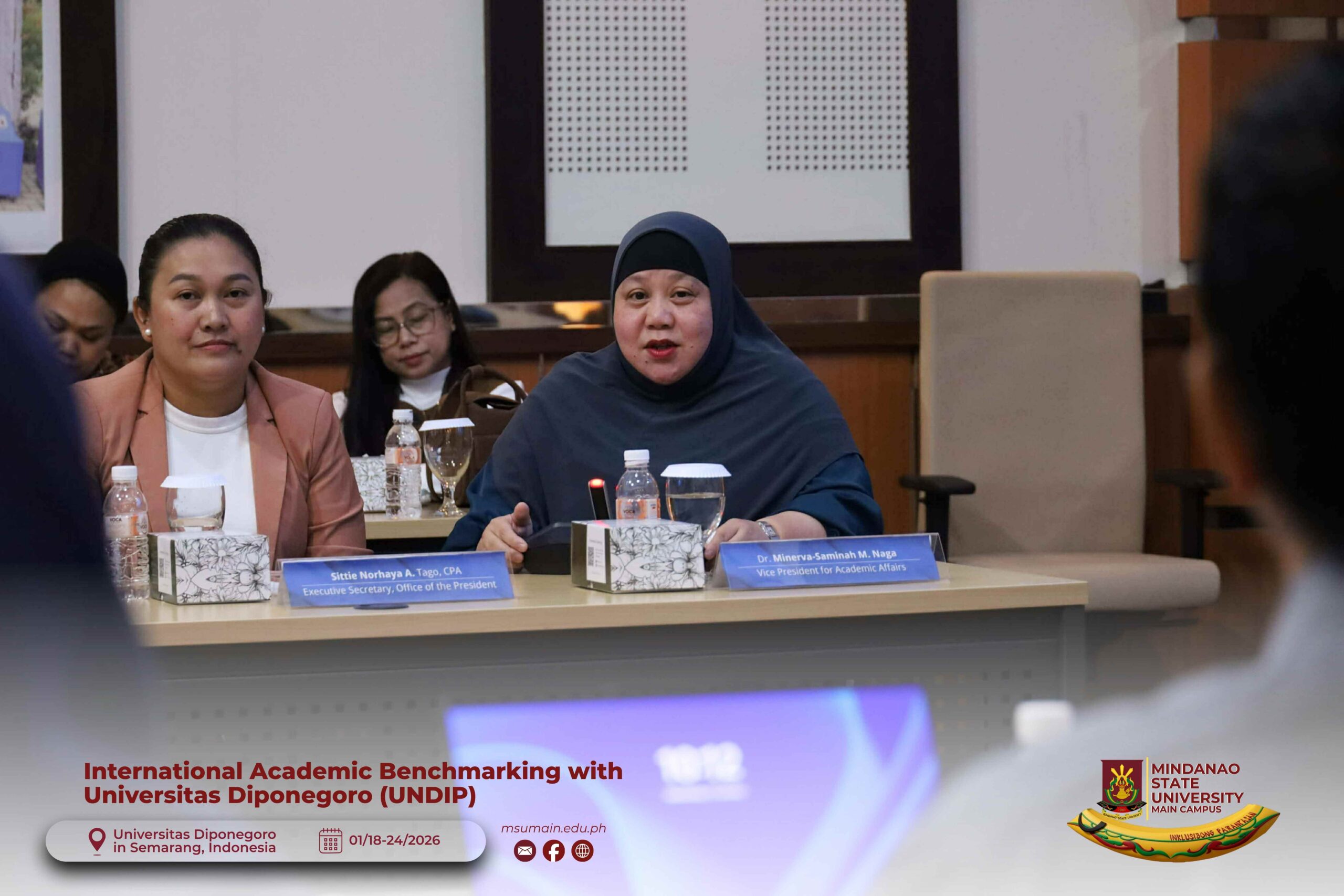 The Mindanao State University (MSU) Main Campus participated in the International Academic Benchmarking and International Engagement activity at Universitas Diponegoro (UNDIP) in Semarang, Indonesia, from January 18 to 24, 2026. The delegation was led by MSU System President, Atty. Paisalin P. D. Tago, CPA, and included the Vice President for Academic Affairs, Dr. Minerva-Saminah M. Naga; the Vice Chancellor for Research, Extension and Development, Dr. Annie Mae C. Berowa; the Vice Chancellor for Planning and Development, Dr. Oding L. Maamor; and the Deans of various colleges of MSU Main Campus.