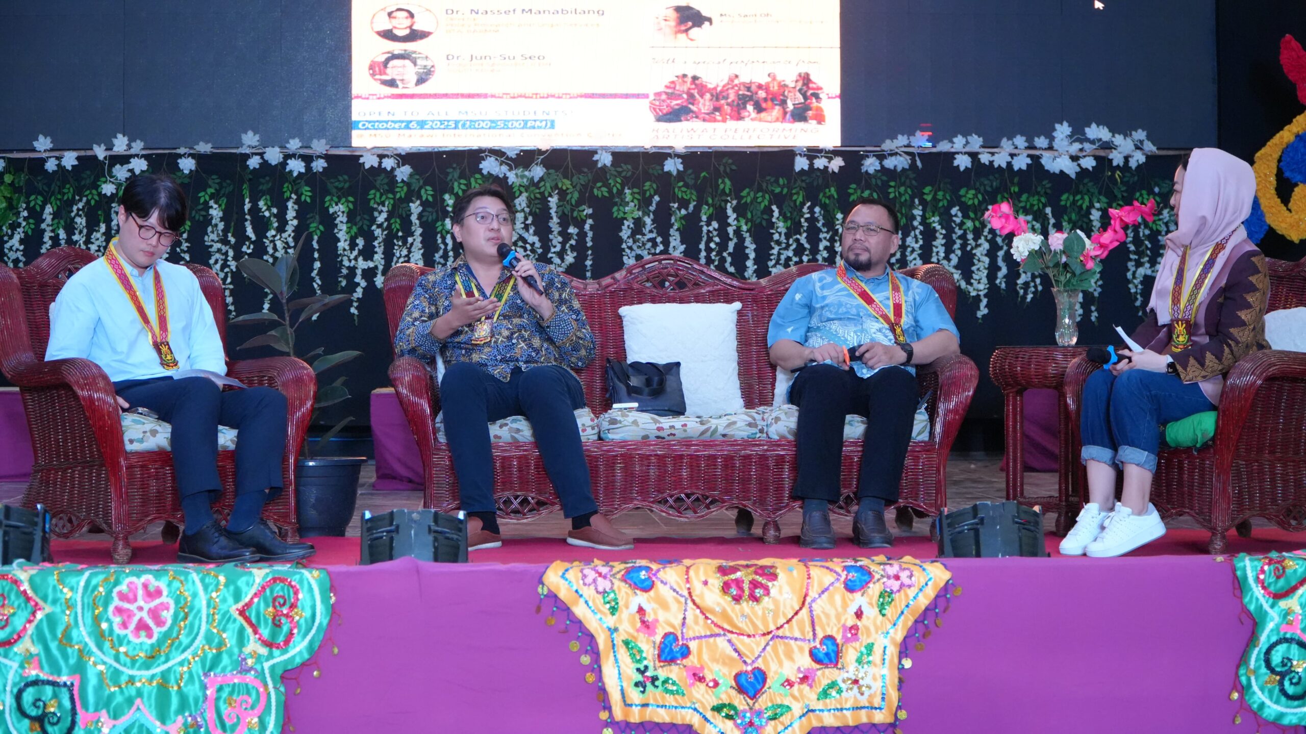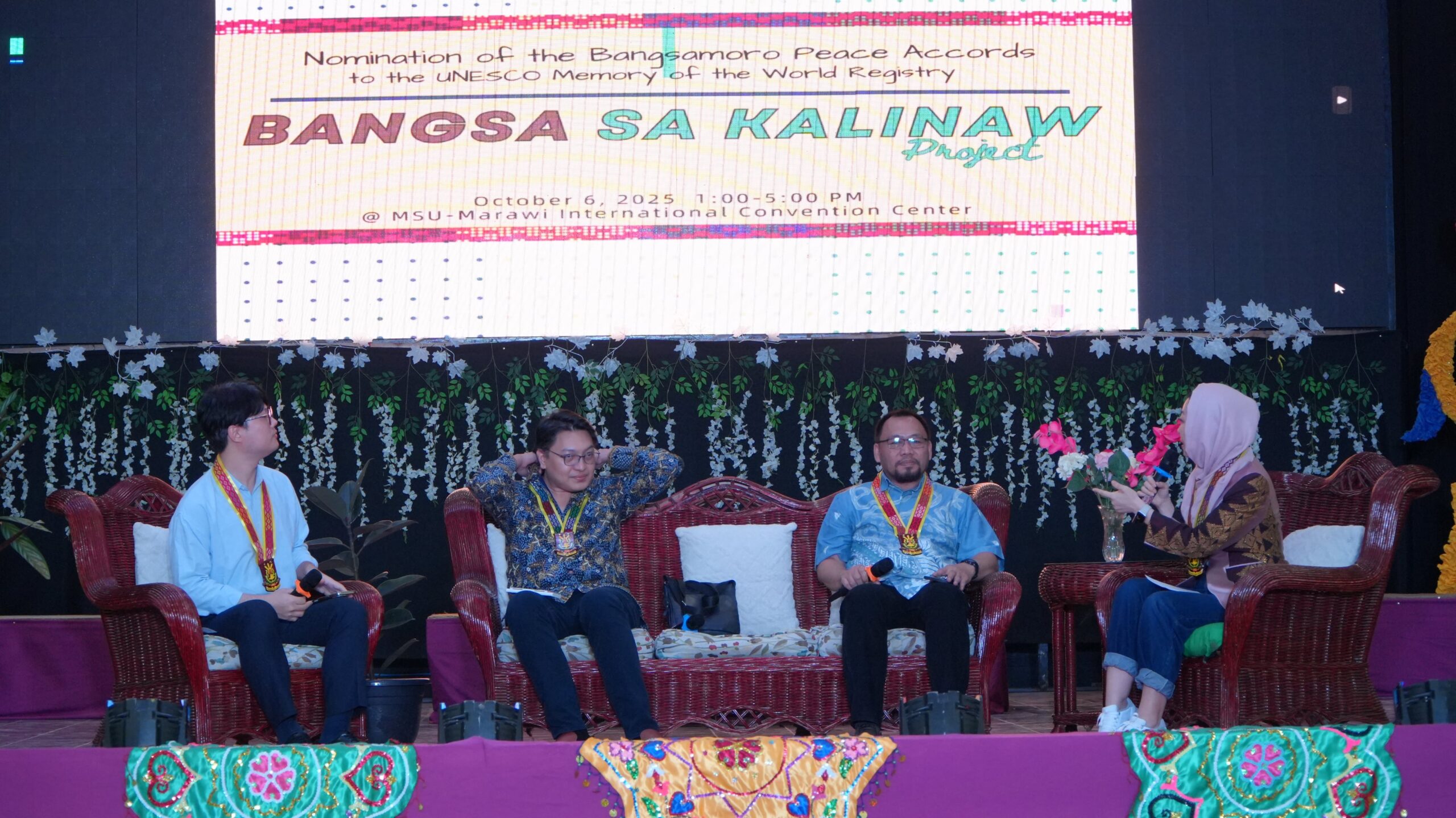 The scholarly rigor of the program was highlighted by the presentation from Asst. Prof. Raihan A. Yusoph, a faculty member of the MSU-Marawi History Department and a PhD Candidate at Hiroshima University, who delivered a comprehensive analysis titled, “Inscribing Peace: The Bangsamoro Peace Accords as UNESCO’s Memory of the World.” This foundational presentation was followed by a distinguished panel discussion that explored the policy and academic implications of the nomination. The panel featured Dr. Acram A. Latiph, Executive Director of MSU-Marawi IPDM; Dr. Nassef Manabilang, Director of Policy Research and Legal Services of the Bangsamoro Transition Authority (BTA-BARMM); and Dr. Jun-Su Seo, Program Specialist at the UNESCO ICDH. The discourse was skillfully moderated by Ms. Sam Oh, Heavenly Culture, World Peace, Restoration of Light (HWPL) Philippines Ambassador.