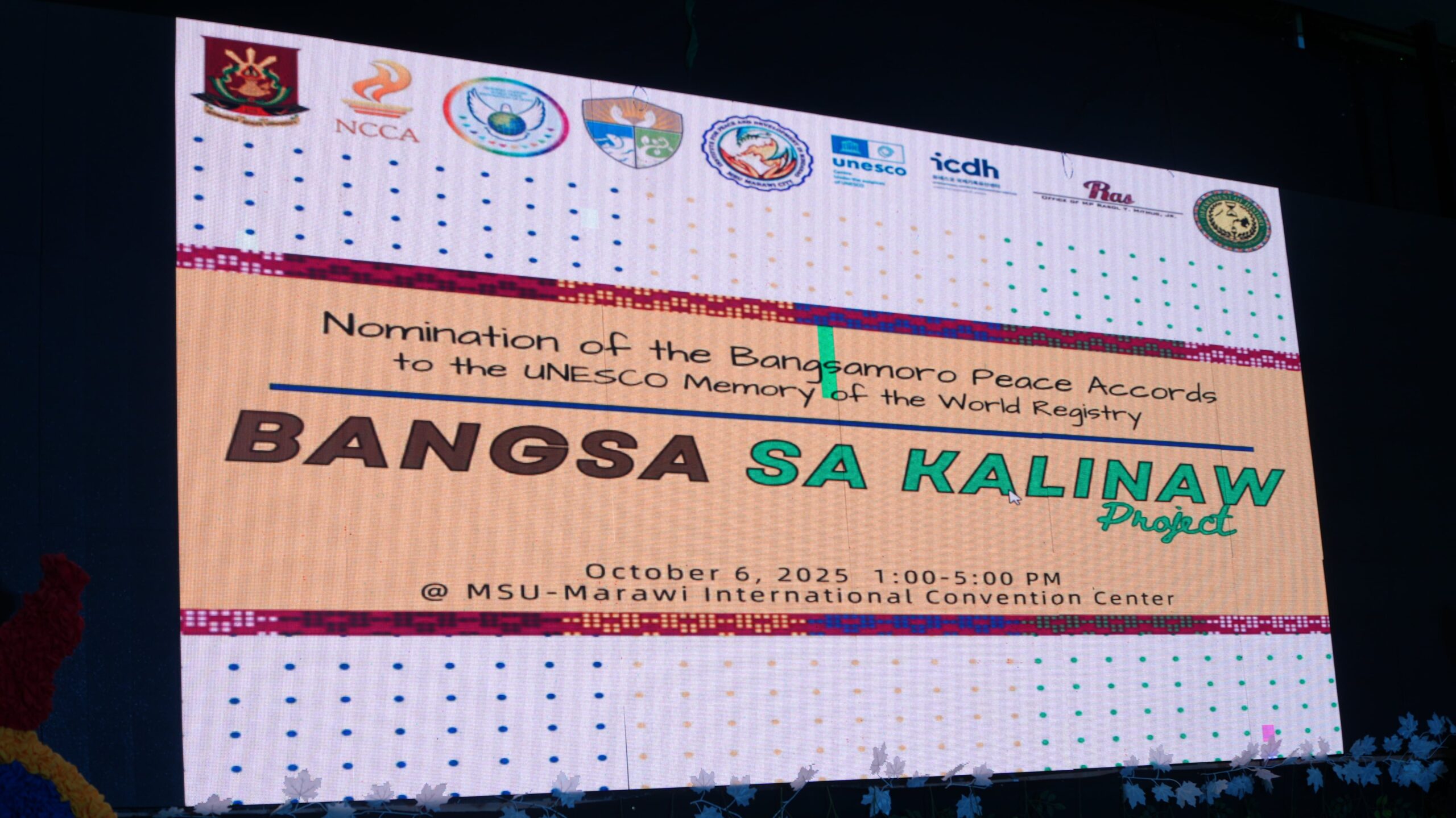 The central objective of the “Bangsa sa Kalinaw” project, organized by the MSU-Marawi Institute for Peace and Development in Mindanao (IPDM), the History Department, the National Commission for Culture and the Arts (NCCA), the UNESCO International Centre for Documentary Heritage (ICDH), and various other partners, is to gain international recognition for the historic documents that chronicle the Bangsamoro people’s decades-long pursuit of peace and justice. By seeking MoW inscription, the University aims to permanently safeguard and globally contextualize these archives, transforming them into an accessible, international resource. The nominated collection comprises the most foundational agreements, including the Tripoli Agreement (1976), the Final Peace Agreement (1996), the Framework Agreement on the Bangsamoro (FAB), and the Comprehensive Agreement on the Bangsamoro (CAB).